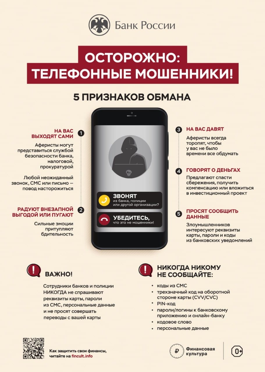 Берегите себя и свои сбережения! В случае столкновения с мошенниками немедленно обращайтесь в правоохранительные органы.