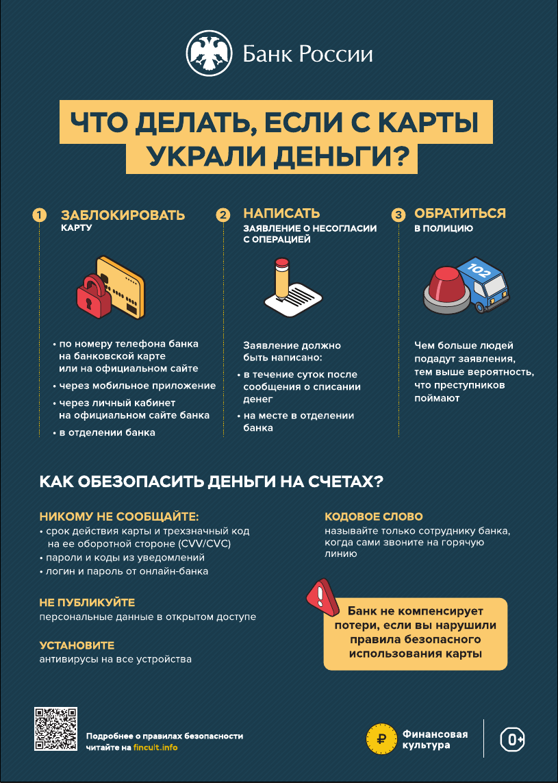Помните: чем быстрее вы отреагируете, тем выше шансы вернуть похищенные средства. Банк обязан рассмотреть вашу претензию в течение 30 дней.